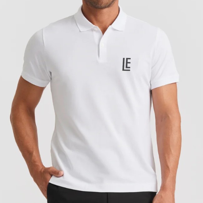 Premium Black Cotton Polo shirt printed with the LE monogram. 96% cotton and 4% elastane micro pique Size Large